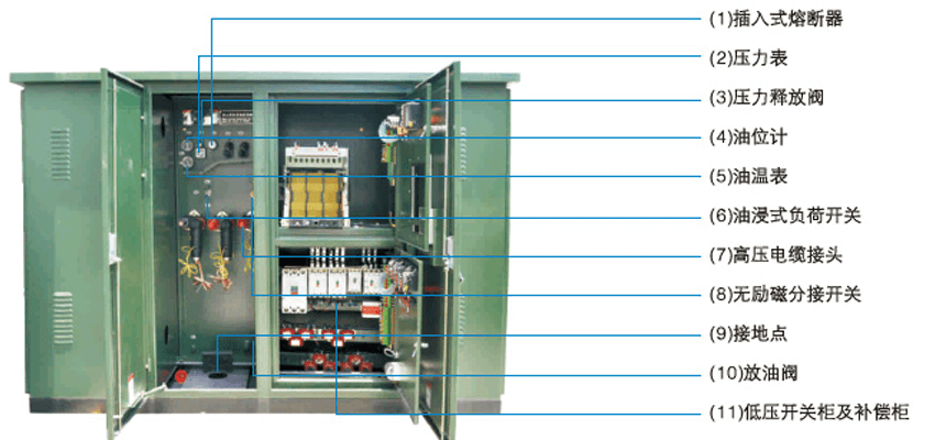用,這就要求制造廠按不同的用戶(hù)需求來(lái)設(shè)計(jì)制造,每個(gè)用戶(hù)所用的供電變壓器容里、開(kāi)關(guān)回路多少、外圍環(huán)境、布置方式等均有差異。由于變壓器安裝在戶(hù)外的箱體中,戶(hù)